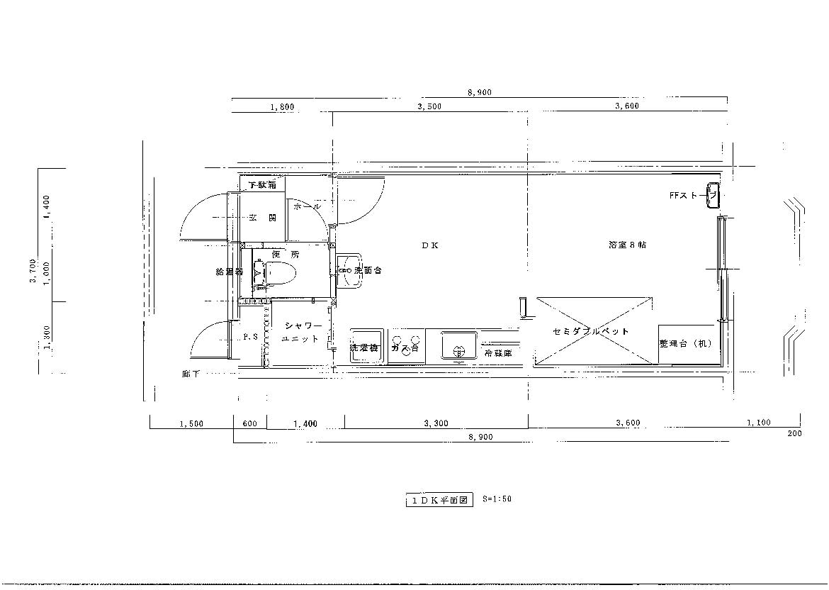 トイレとシャワー(お風呂無し)は独立、収納引出し付のベッド付き部屋とベッド無し部屋(押入付き)の2タイプ.